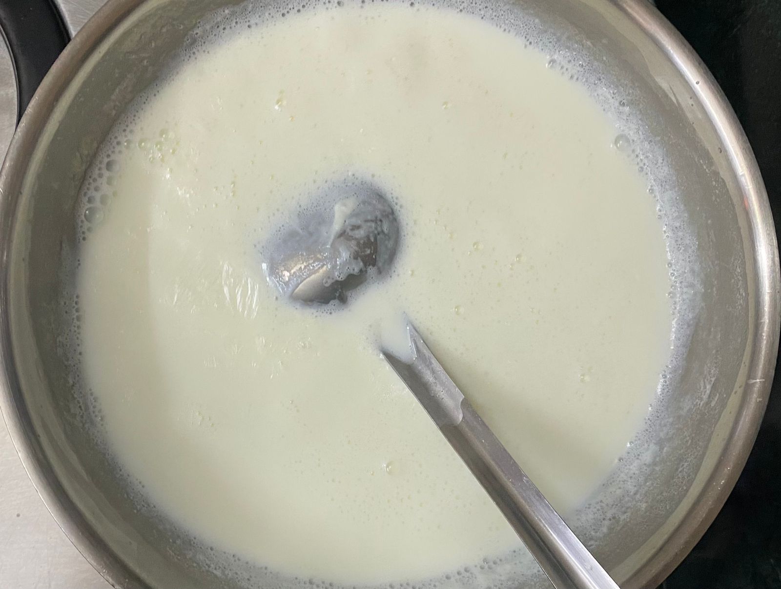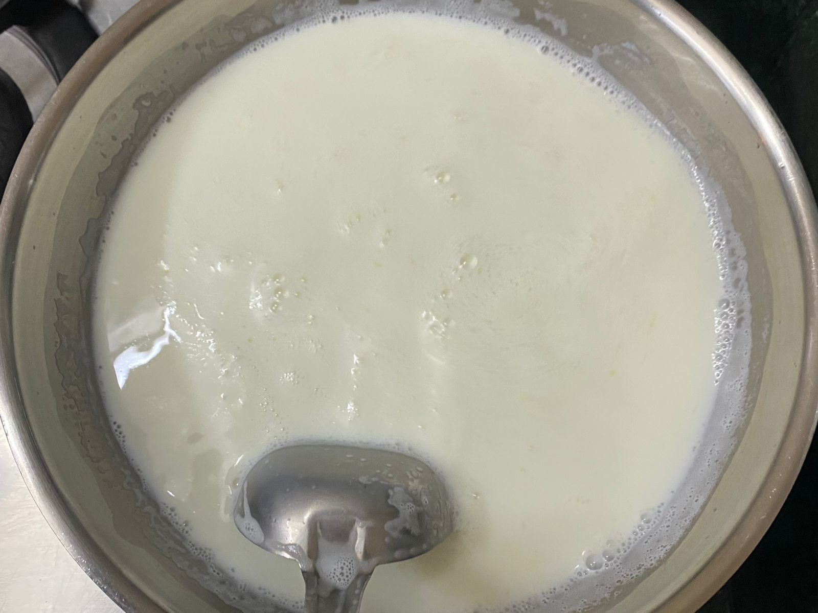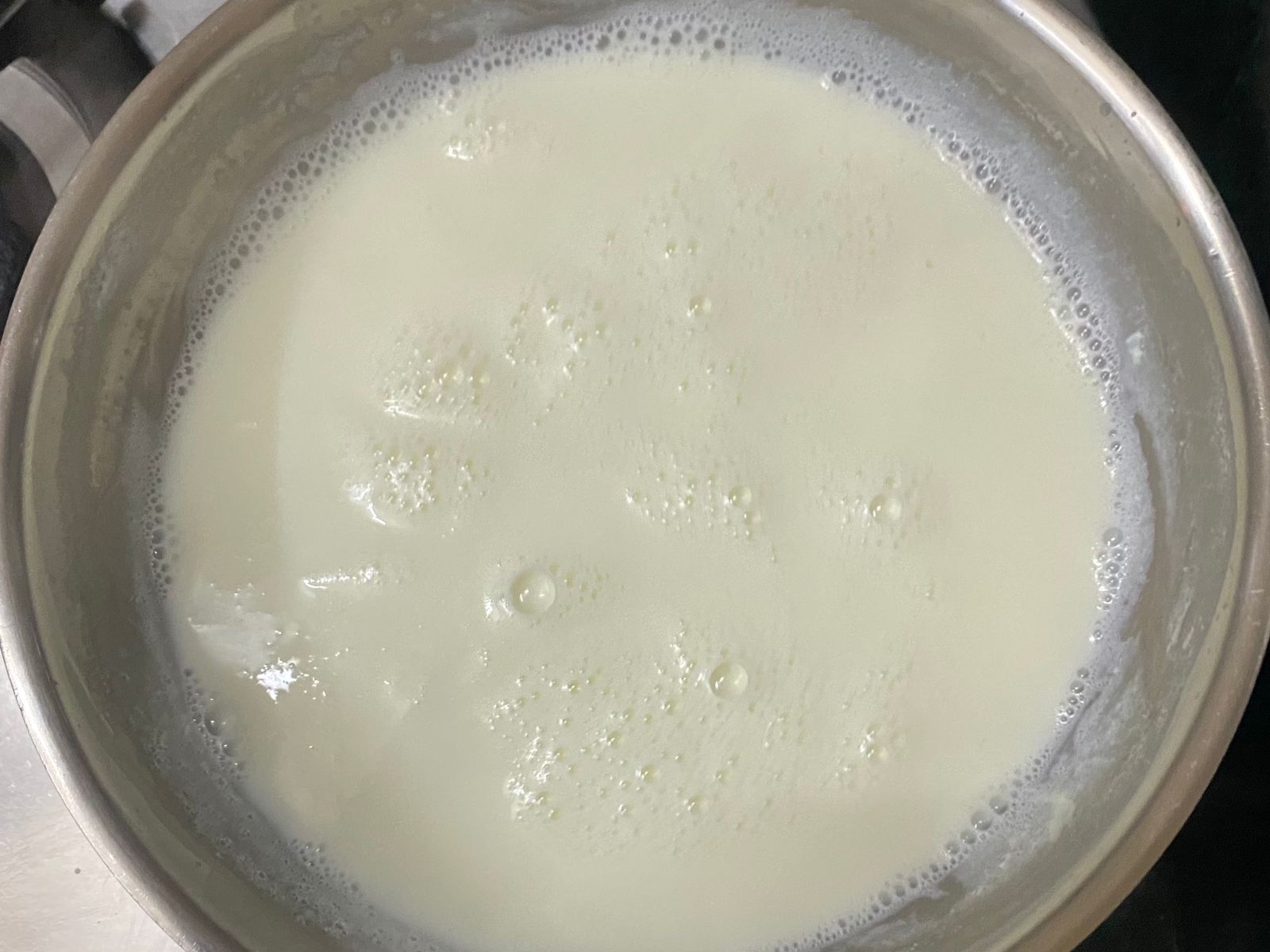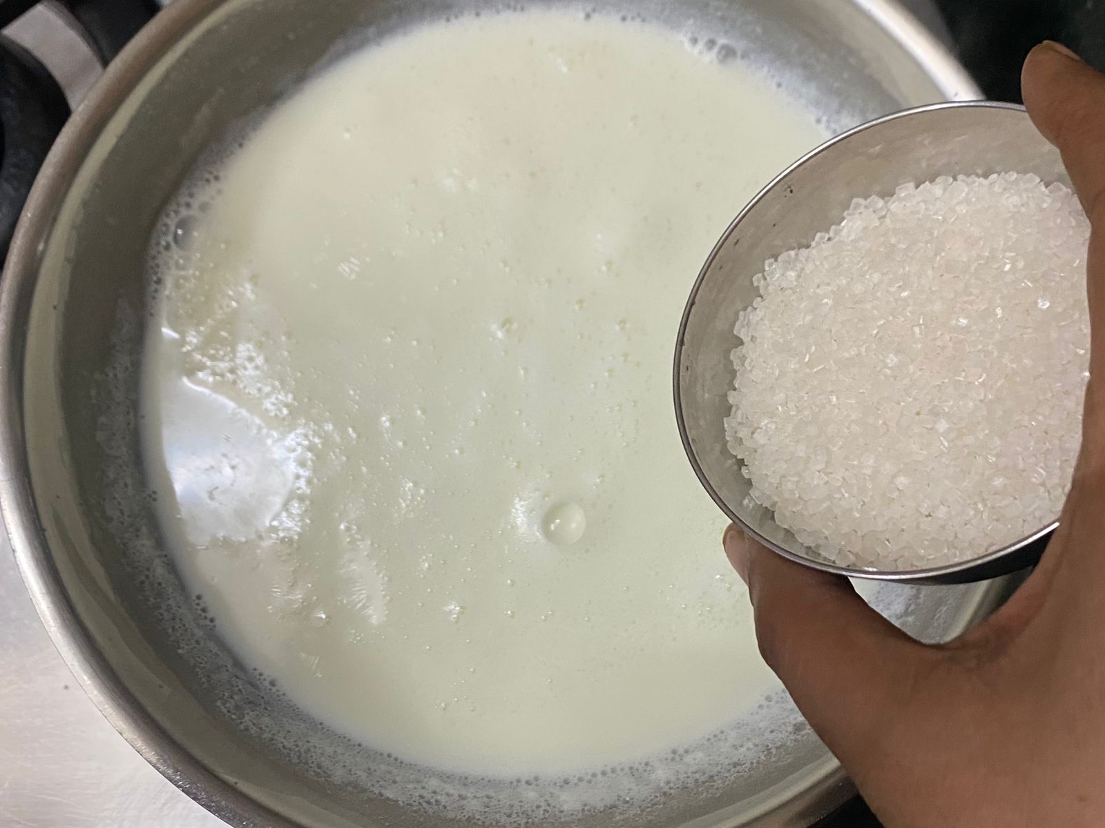 Pour the milk in a pan and let the milk come to a boil. Heat the milk for around 5-7 minutes on low heat. Stir in between so that the milk does not stick to the bottom of the pan.
