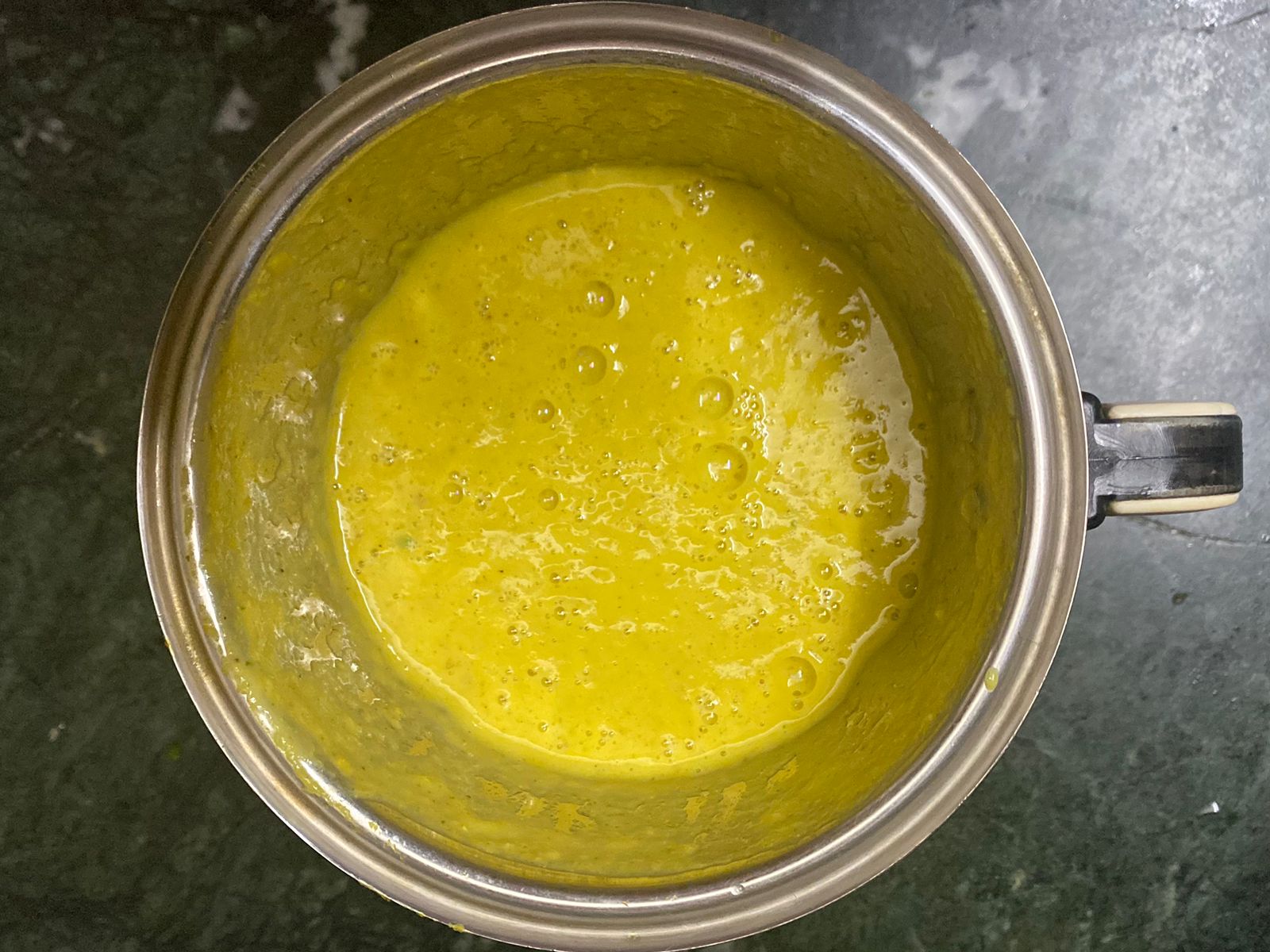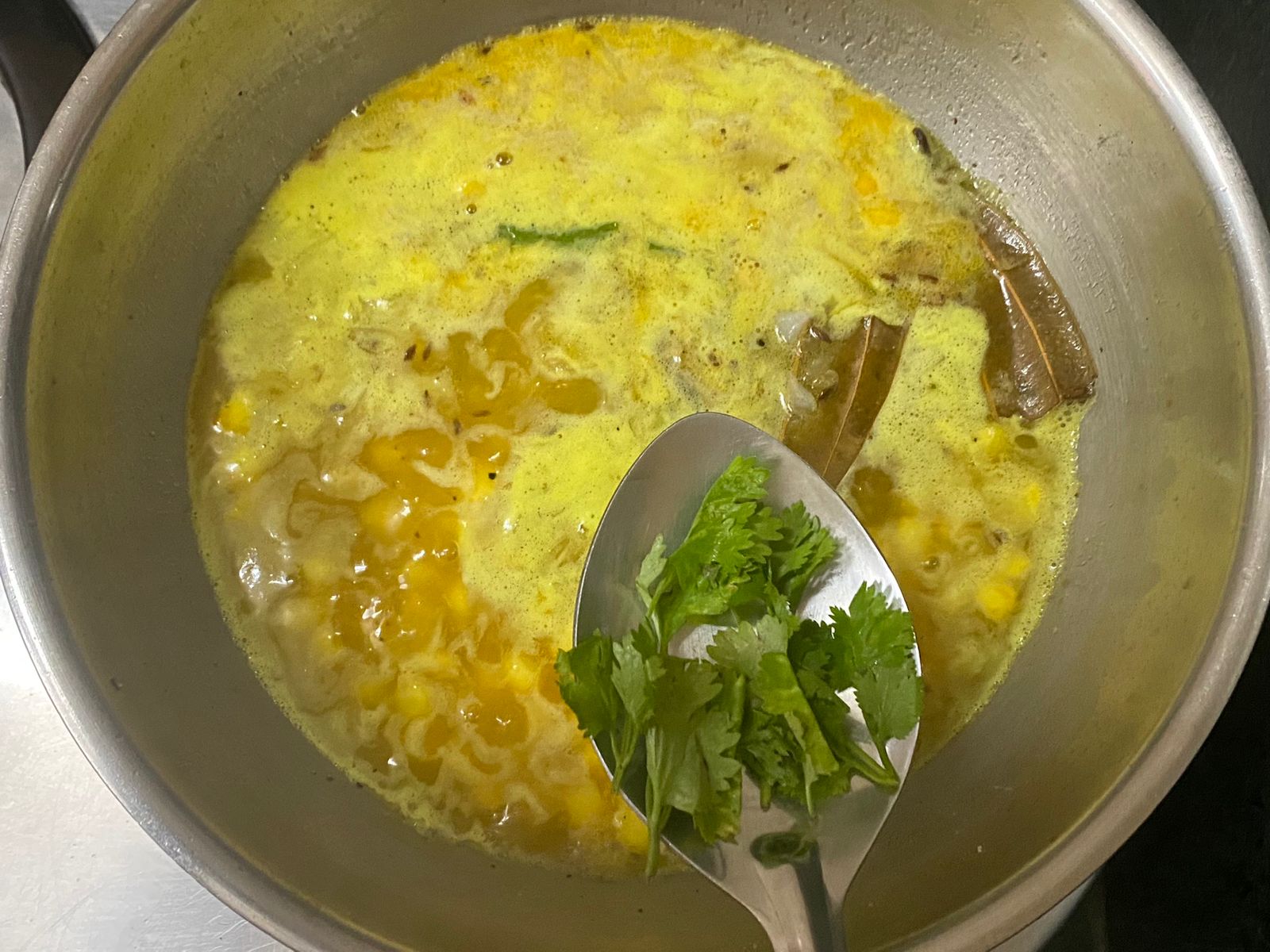 Add turmeric powder and coriander leaves, then boil the soup for 5-7 minutes on medium heat. Turn off the heat and let it cool.