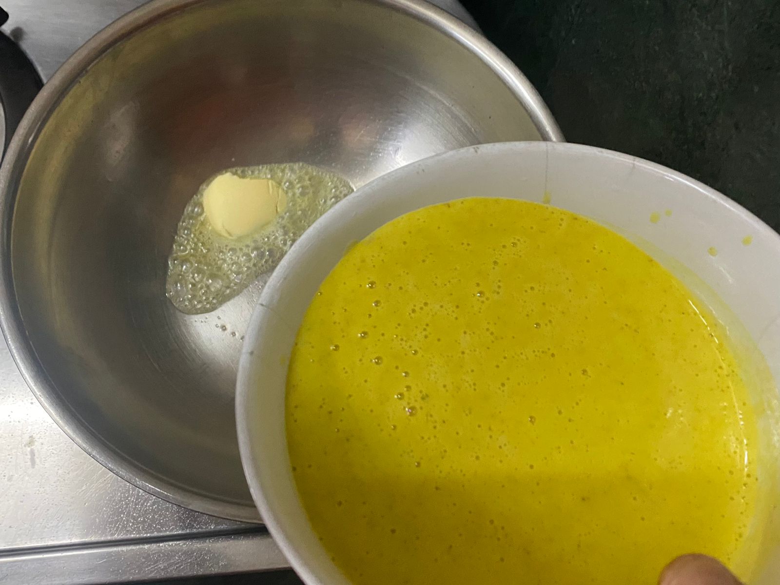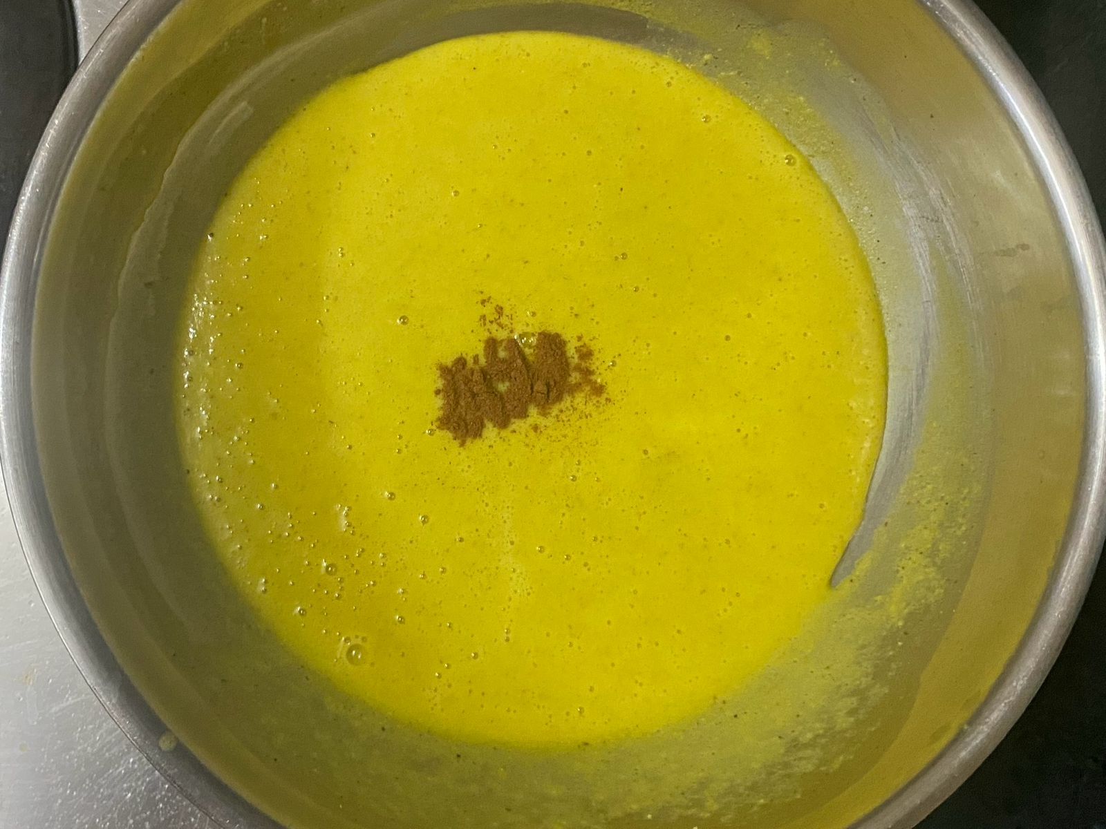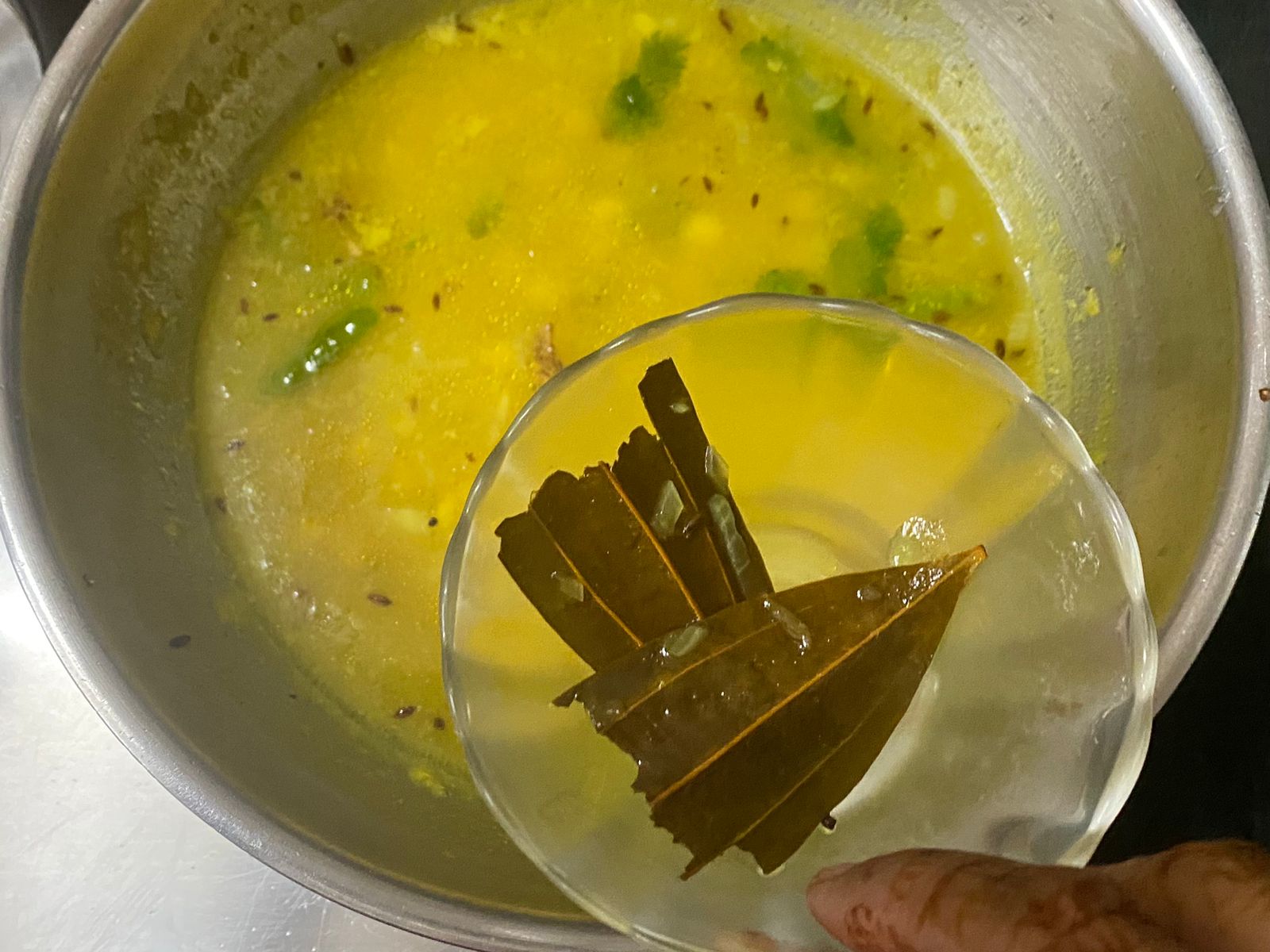 For tempering, heat butter and add the shorba and cinnamon powder. Warm it before serving.