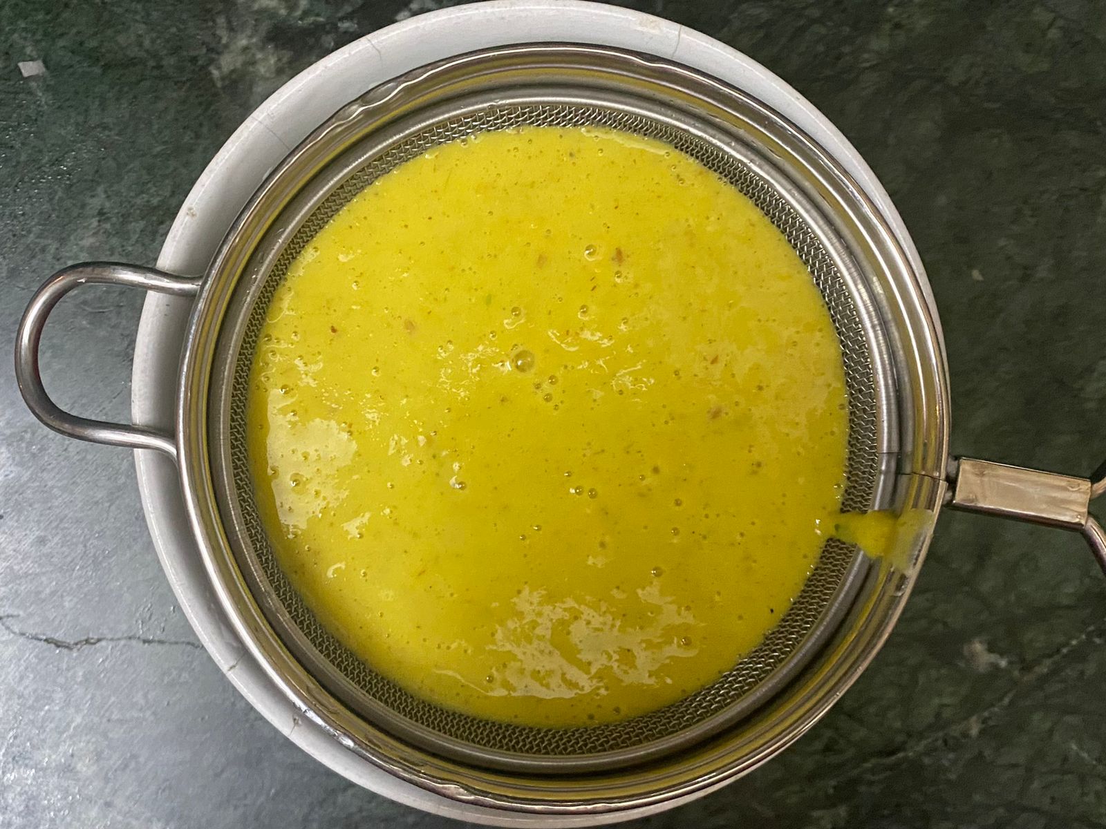 Remove the bay leaf, puree, and strain the shorba for smooth consistency.