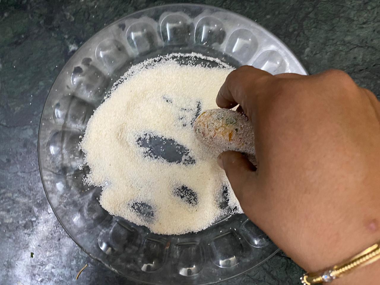 Place them in the semolina and coat them evenly.
