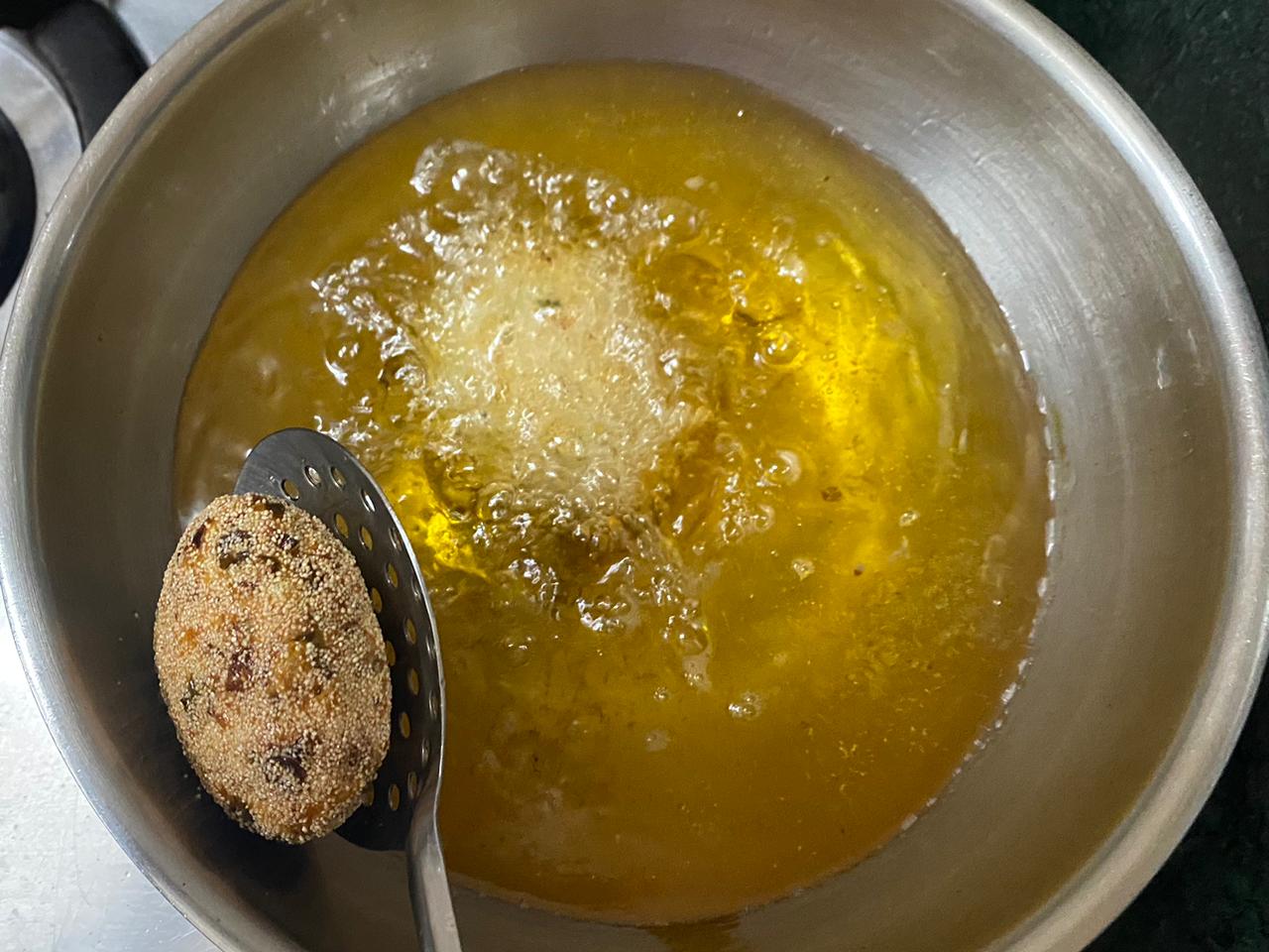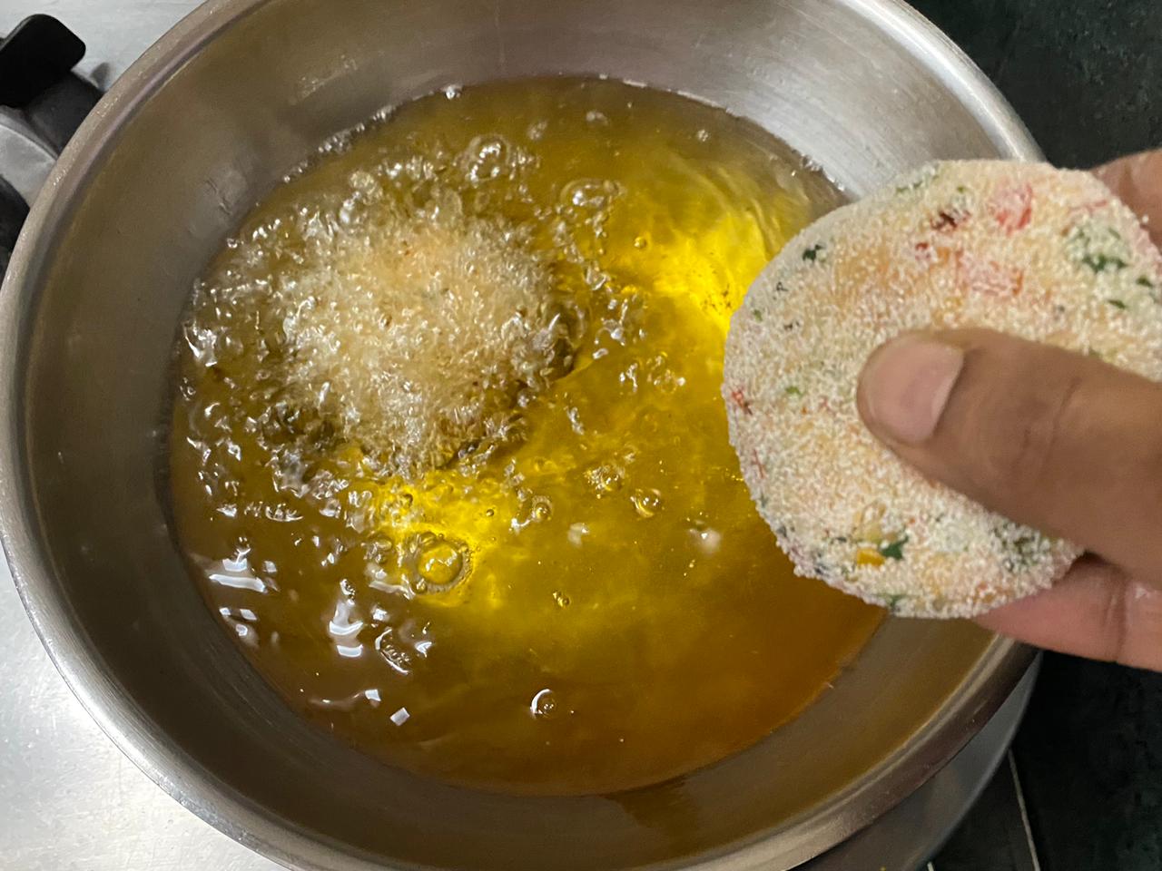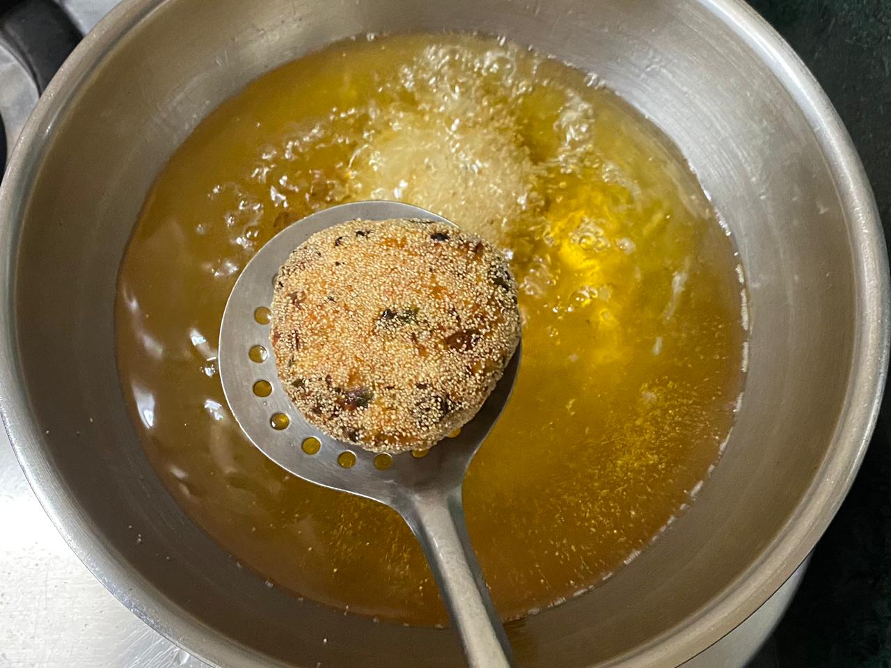4. Make sure to fry at high temperature otherwise the veg cutlet might break.